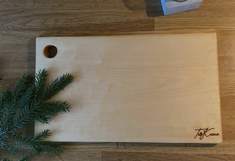 Vi säljer handgjorda skärbrädor i svenskt björkträ. Storleken är cirka 35 x 25 cm, men kan variera något eftersom alla brädor görs för hand. Varje skärbräda är därför unik. Vissa brädor har ett hål för upphängning och andra saknar hål, beroende på modell. Våra skärbrädor är både praktiska att använda och fina att ha framme i köket. De är gjorda med fokus på kvalitet, hållbarhet och träets naturliga utseende.