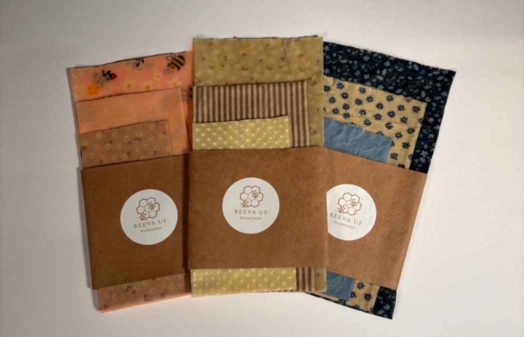 Vår produkt är en återanvändbar bivaxduk gjord av bomullstyg, ekologiskt bivax, jojobaolja och kolofonium. Dukarna formas med värme från händerna och används som ett bättre alternativ till plastfolie för att täcka mat, skålar och förvara frukt eller bröd. De är följsamma, tåliga och kan användas i upp till ett år.