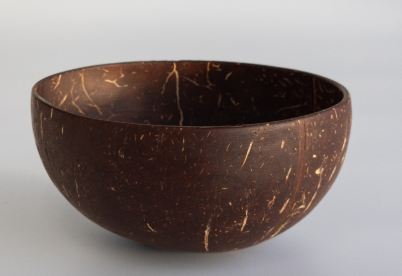 Vår handgjorda kokosnötskål är skapad av återbrukade kokosnötter och noggrant bearbetad för att bli både hållbar och vacker. Varje skål slipar och oljar vi för hand för att få en len yta och ett naturligt, levande utseende.