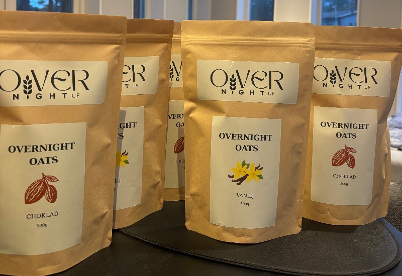 Overnight Oats-mix i 500g förpackning i smakerna choklad och vanilj. En snabb och hälsosam frukost, proteinfylld och sockerfri.