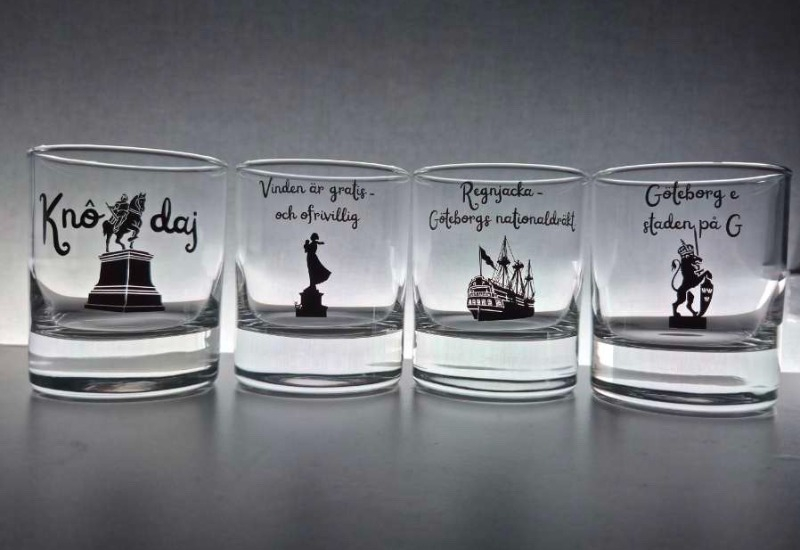 Fyra glas med fyra klassiska göteborgska uttryck – ett komplett Göteborgspaket. Silenos UF:s 4-pack innehåller glasen ”Knô daj”, ”Vinden är gratis – och ofrivillig”, ”Göteborg e staden på G” och ”Regnjacka – Göteborgs nationaldräkt”. Perfekt som present eller till hemmabaren. Glasen rymmer 20 cl, är tillverkade i tåligt material och tål diskmaskin, men handdisk rekommenderas för längre hållbarhet. Designade av unga entreprenörer med lokalkärlek.