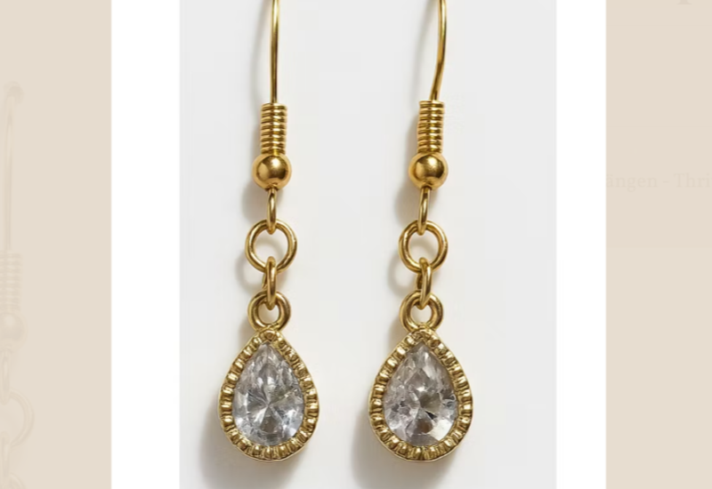 Silver- och guldpläterade örhängen med "teardrop" berlock.