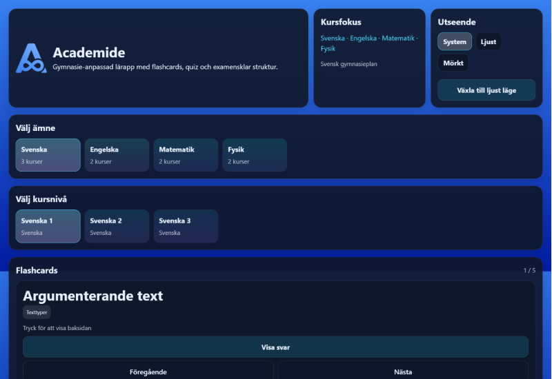 Våran lärotjänst är gratis att använda och sätter så lite hinder mellan användaren och deras lärande som möjligt. Vi utvecklar även ständigt våra tillgängliga kurser och material samt lägger till nya funktioner för att se till att man lätt kan plugga inför exempelvis prov eller examen.