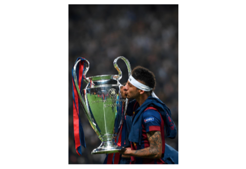 Neymar Jr Kissing The Champions League Trophy