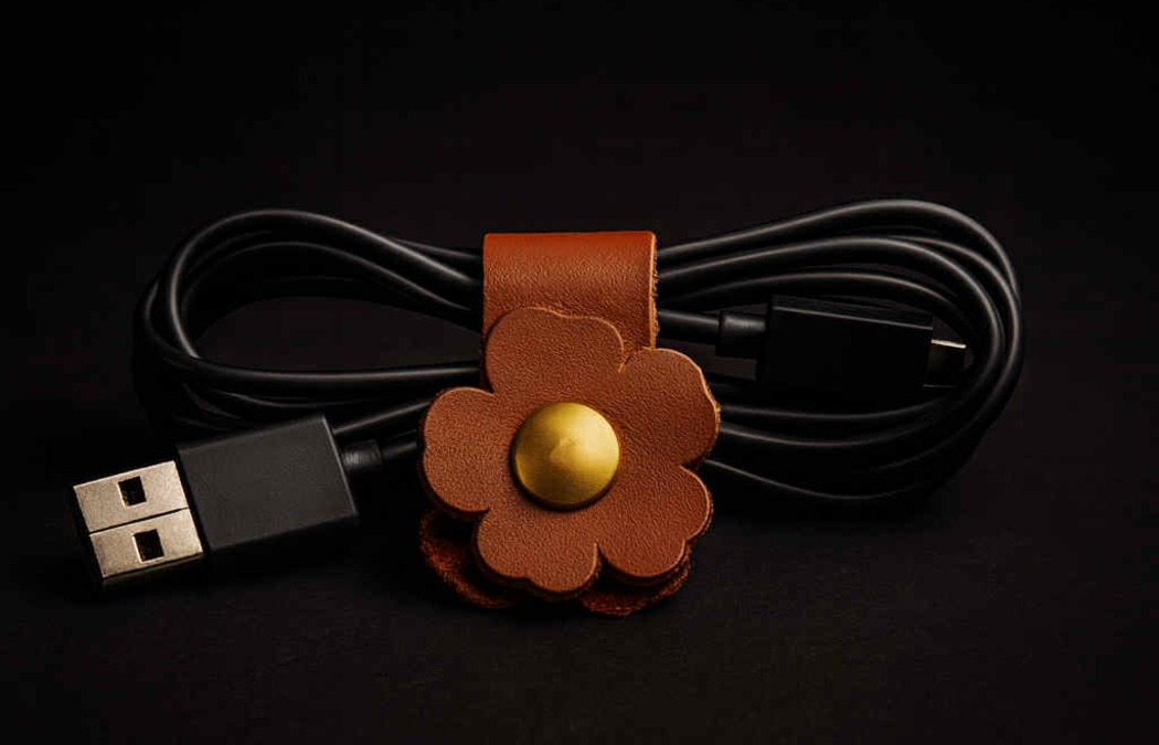 En hållbar Kabehållare som hjälper folk att hålla ordning på sina sladdar och vardagsteknik. Den är tillverkad av återvunnet läder och gör det smidigt att ha laddaren i fickan, väskan mm.