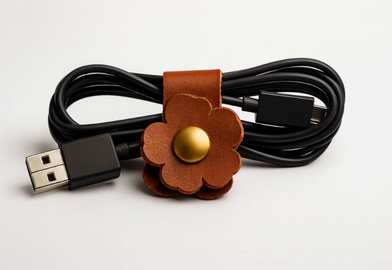"Ledora original" är en kabelhållare tillverkad av återvunnet läder. Den gör det enkelt att hålla koll på sin laddare, hörlorar, den gör det möjligt att ha laddaren eller hörlurarna med sig alltid --> går att lägga på nyckerlringen med sladden i.