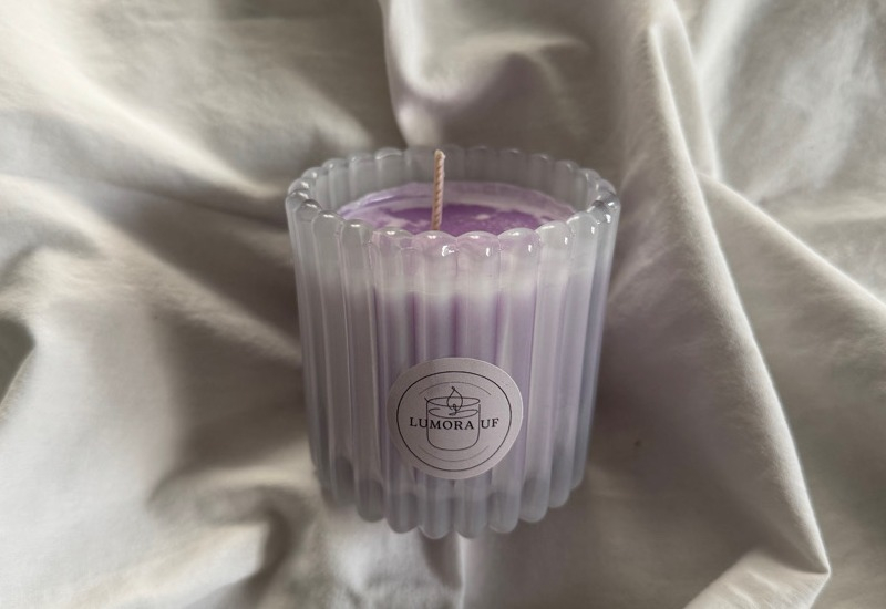 Doftljus med doft av lavendel i en ljuv lila färg.