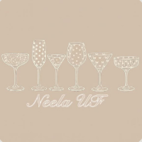 Vi i Neela UF köper in olika glas från second hand och handmålar olika motiv med glasfärg. Våra olika serier innehåller prickar, hjärtan, rosetter och blommor.