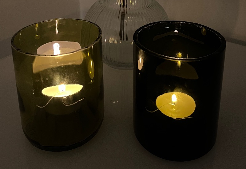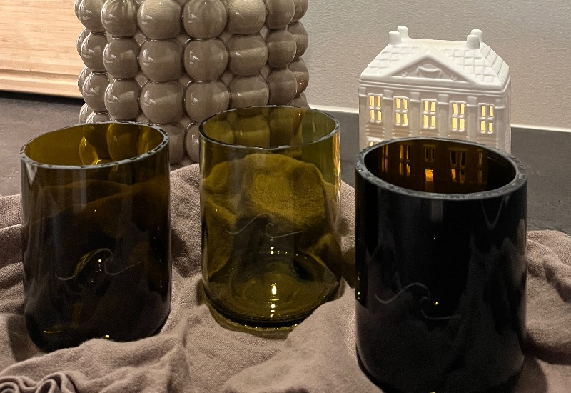 Vårt företag säljer handgjorda dryckesglas som även går utmärkt att använda som ljuslyktor. Produkten är tillverkad av återanvända vinflaskor och eftersom glasen är handgjorda skapar vi unika exemplar, där inget är det andra likt. Varje glas får sin egna karaktär och historia.