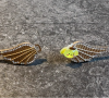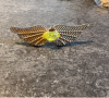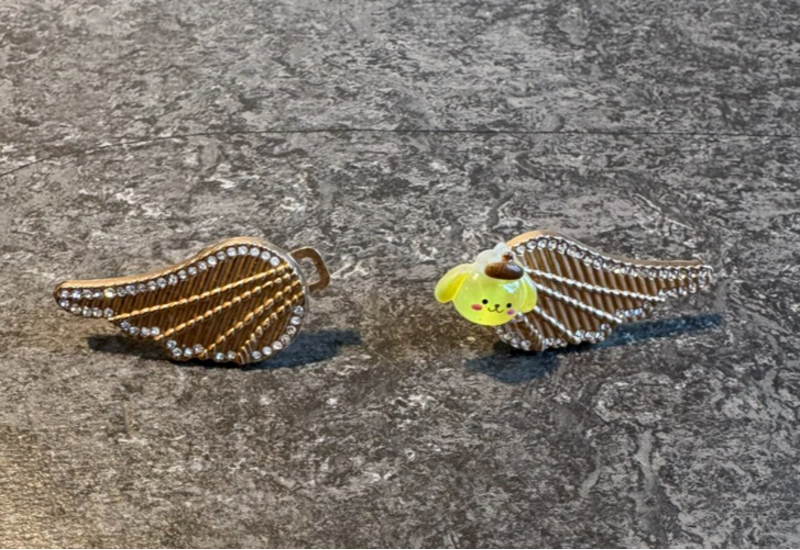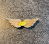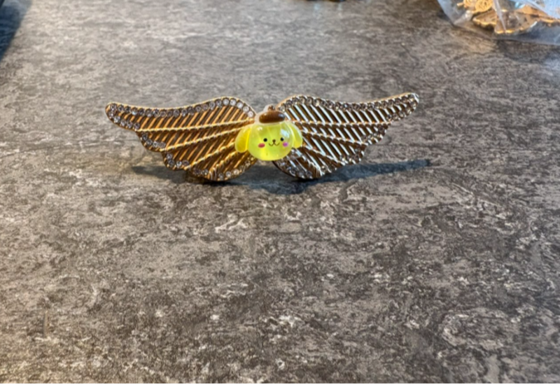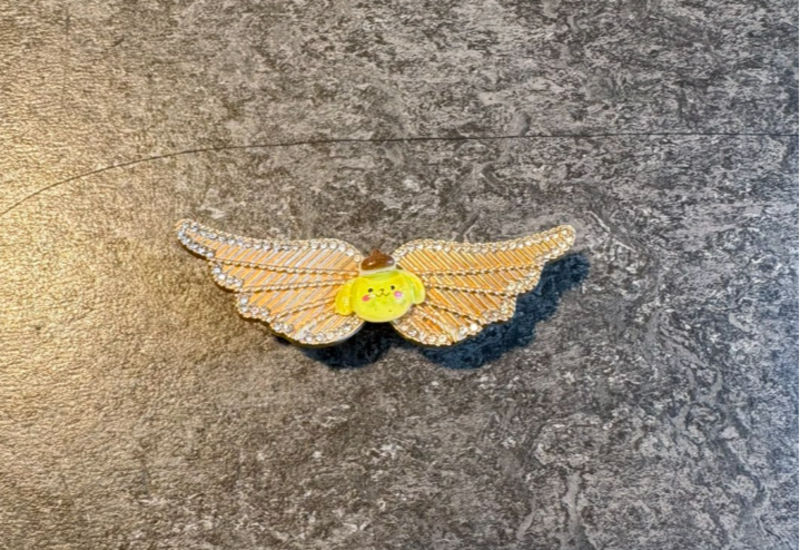 Guldig brosch/byxklämma med vackra filigrandetaljer och en dekorativ pompomurin i mitten som fångar ljuset fint. Elegant accessoar som passar både till vardag och fest.