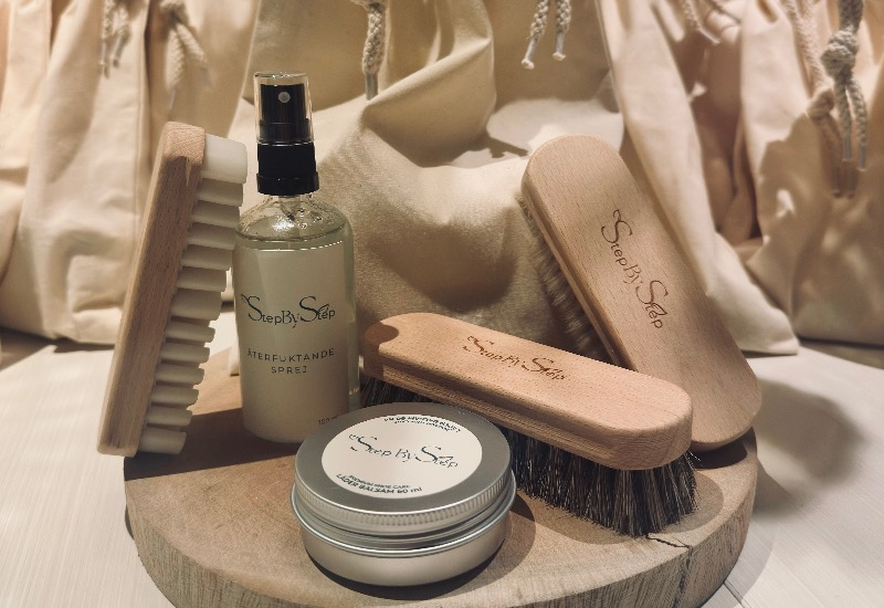 Last Step är det fullkomliga paketet där du har möjlighet att ta hand om alla material på dina skor dvs Mocka, Newbuck, Textil och Läder. I Last Step får du 100 ml återfuktande sprej, läderbalsam, Crepe borste, hästhår borste och Get hår borste för extra premium känsla och resultat. Med QR-koden får du alla videos för att ta hand om skorna där du följer Mig Gabriel, grundare av StepByStep. Med StepByStep Kan du förvänta dig otroliga resultat med gott samvete inga naturfarliga kemikalier inga kompromisser och otrolig kvalitet. StepByStep är framtiden av skovård så häng med på trenderna och låt oss förändra skovårds marknaden steg för steg till en hållbar, enkel och effektiv skovård.