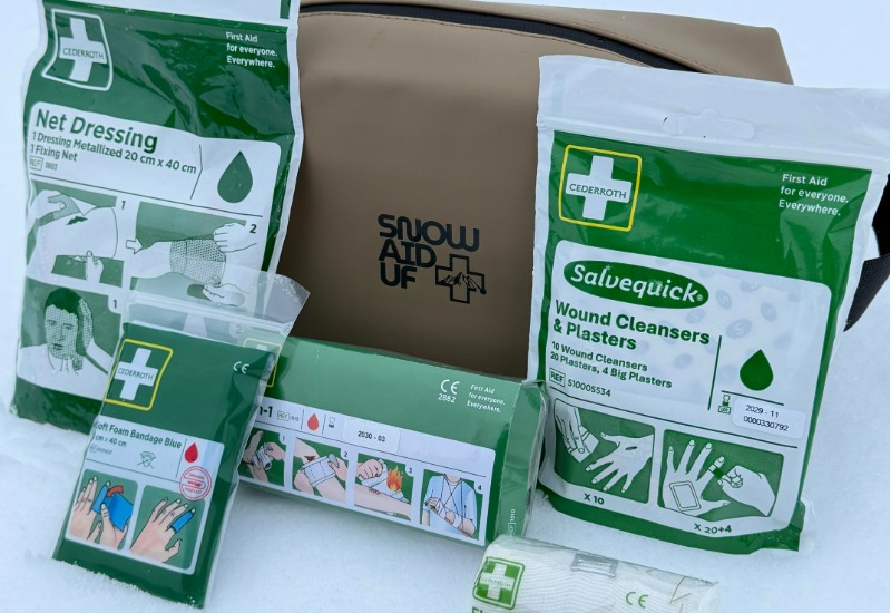 Vi på SnowAid UF erbjuder exklusiva och högkvalitativa första hjälpen-kit, särskilt framtagna för vinteraktiviteter. Våra kit är designade för att ge trygghet, säkerhet och snabb hjälp vid olyckor och skador – oavsett om du åker skidor, vandrar eller bara vill vara väl förberedd i vardagen. Kitten innehåller ett elastiskt bandage, sårtvättare, plåster, soft foam bandage, metalliserad kompress och en blodstoppare. Dessa är speciellt framtagna för att hjälpa till vid skärskador.