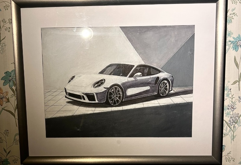 Handmålad Porsche 911 av akrylfärg och bläck