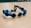 Armbandet har svarta djurtassar som påminner om en svart katt. Flätningen runt tassarna är nyanserat och växlar från en vit färg till en mörkare blå.