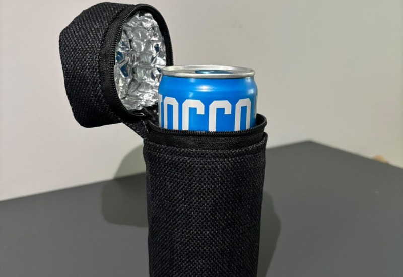 Vi erbjuder ett handsytt kylfodral till 33 cl burkar för att hålla dom kalla hela dagen.