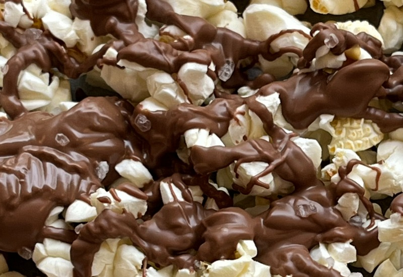 Chokladdoppade popcorn med flingsalt