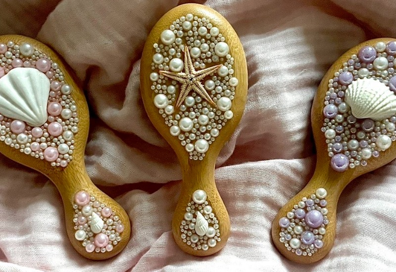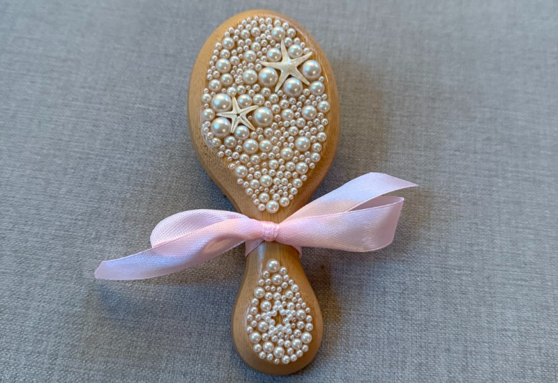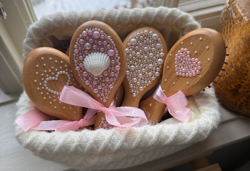 Vi erbjuder en borste i bambu där vi har sett till att det lilla extra är inkluderat. Med vår hårdborste är baksidan dekorerad med pärlor för att ge dig en bättre upplevelse när du tar hand om ditt hår.