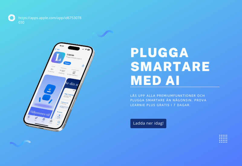 Learnie är en gratis studieapp som hjälper elever att plugga smartare med AI-genererade quiz, provfrågor och studiemetoder. Användare får varje månad krediter, AI-assistentfrågor, kalender med påminnelser och tillgång till flera funktioner. För den som vill ha ännu mer finns Learnie Plus med fler krediter, fler AI-frågor och anpassade studieplaner. Perfekt för bättre resultat i skolan.