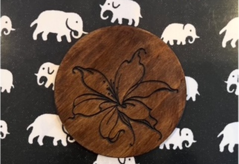 Vi säljer glasunderlägg gjort av spillträ med unika graveringar utifrån kundens önskemål.
