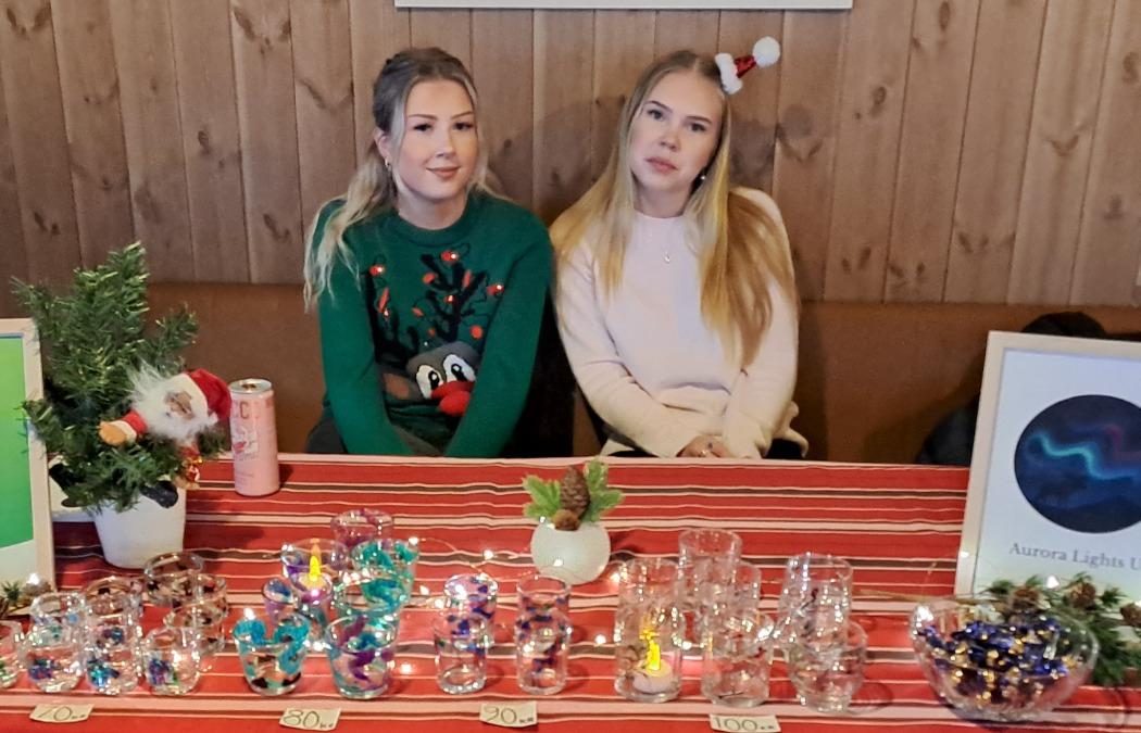 Vi säljer återbrukade glaskoppar som vi har köpt second hand, sedan har vi målat dem med naturmotiv från norra Sverige. Vi ger nytt liv åt gamla material.