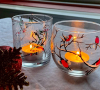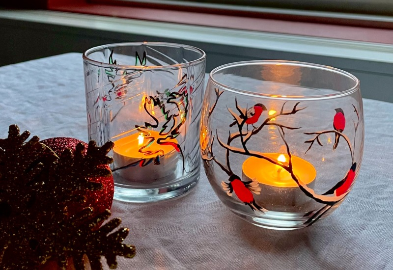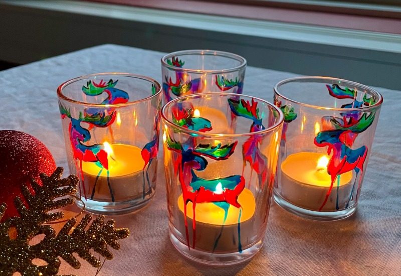 Vi säljer återbrukade glaskoppar som vi köpt in från second hand. Som vi sedan målat naturmotiv från norra Sverige på. Vi ger nytt liv åt gammalt material.