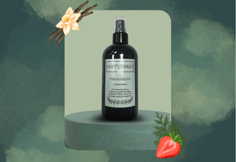 Linnevatten i en 300ml flaska med doft av rabarber, grapefrukt, äpple, jordgubbe & hallon med bas av musk, vanilj och cederträ. En enkel spray på soffan eller sängkläderna ger en fräsch och nytvättad känsla i hemmet. Linnevattnet är också perfekt att använda i samband med strykning, det mjukgör tyget, motverkar statisk elektricitet, vårdar fibrerna, samt minskar behovet av frekvent tvätt.