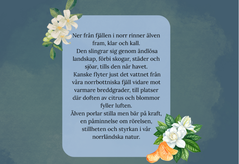 Luftfräshare i form av små flaskor (6ml) fyllda med doftolja. De sprider en ren och uppiggande känsla i bilen, men kan även användas på andra ställen såsom i toan, hallen, garderoben osv. Denna doft är samma som vårt linnevatten vid namn Älven: Mandarin, lime, rosa grape, jasmin, gardenia och lilja med en bas av söt vanilj.