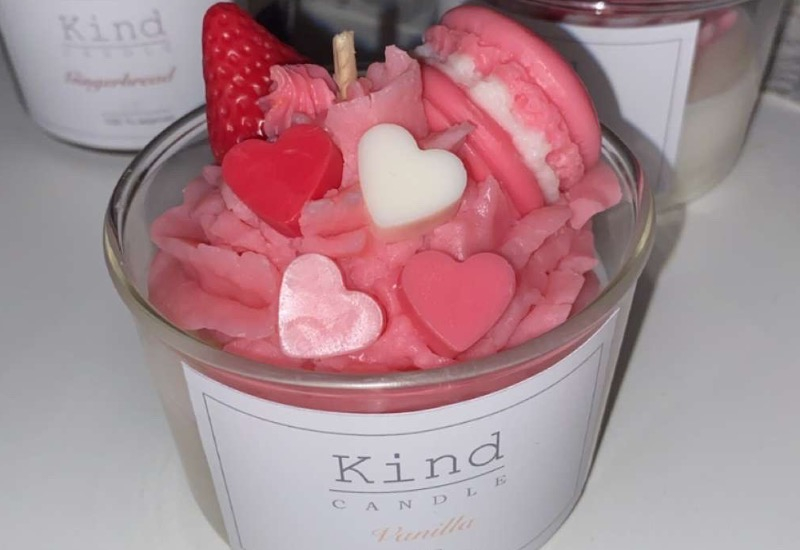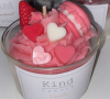 Detta ljus ser ut som att det skulle kunna serveras som en efterrätt med dess söta detaljer men skulle inte rekommenderas att äta. Detta ljus är i doften vanilj men vi brukar skifta mellan den och jordgubb&glass doften.