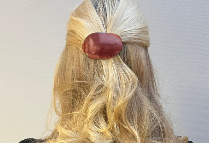 Vi erbjuder en accessoar där själva skeden fungerar som en dekorativ klämma. Handtaget är borttaget, och skedens skål är monterad på en barette-liknande klämma som fästs enkelt på baksidan. Håll håret på plats med våra handgjorda hårklämmor av återbrukade skedar. Välj mellan den stilrena silvriga hårklämman eller den tyginklädda hårklämman för att matcha med kläderna.