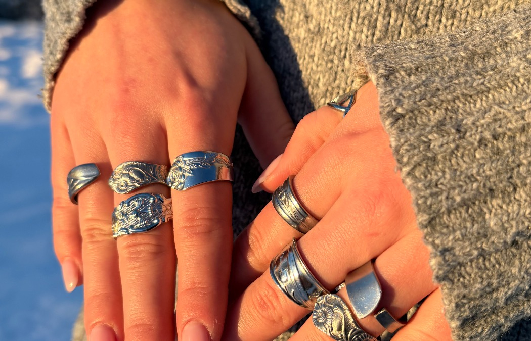 Vi säljer och tillverkar ringar av återvunna metaller som bestick.