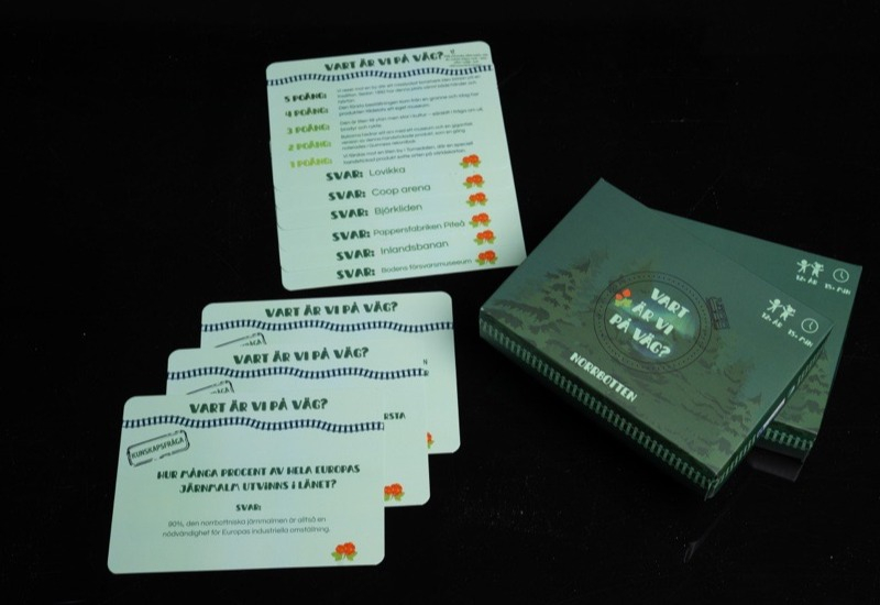 Samla vänner och familj för ett lärorikt och underhållande frågespel där ni får resa runt till olika destinationer i Norrbotten. Spelet sprider kunskap om regionens kultur, historia och natur på ett roligt sätt, samtidigt väcker vi reflektion kring hållbarhet och vart vi egentligen är på väg - både som spelare och som samhälle.