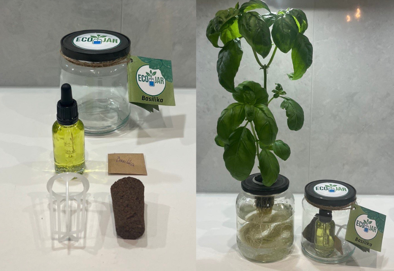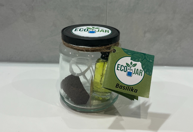 EcoJars hydroponiska odlings-kit använder återbrukade glasburkar som både förpackning och odlingskärl. Fröna gror i en pluggkorg i locket och näring tillförs enkelt via en glaspipett. Odlingen sker i vatten utan jord, kräver minimalt utrymme och underhåll och sparar upp till 90 % vatten jämfört med traditionell odling. EcoJar är ett enkelt, hållbart och roligt sätt att odla kryddor hemma i vardagen. Produkten säljs för närvarande endast fysiskt vid marknader och mässor.