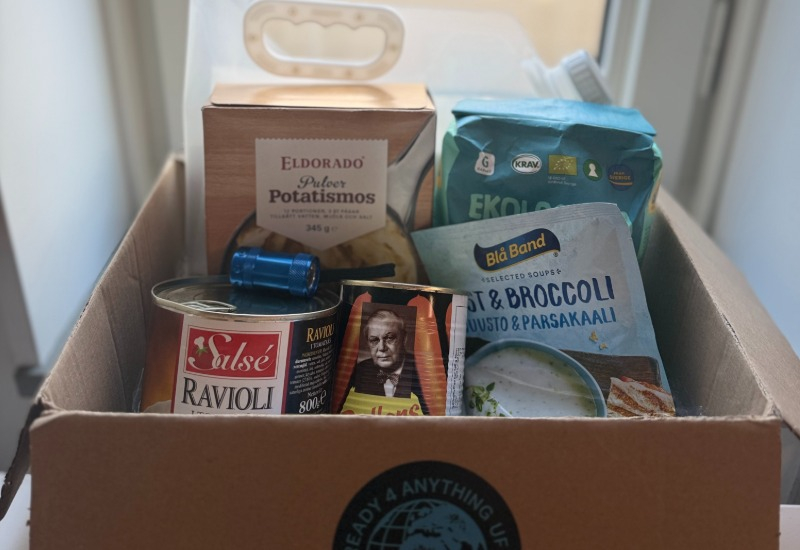 Det innehåller hållbar mat, en vatten dunk för säker och smidig förvaring av dricksvatten samt en batteridriven ficklampa som ger en pålitlig ljuskälla vid strömavbrott. Som komplement kommer vi även erbjuda spritbrännare separat, så att du kan tillaga maten hemma även när elen inte fungerar.