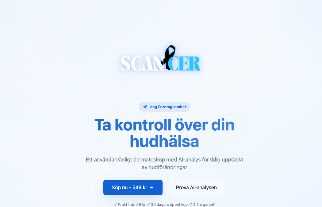 På https://scancer.se kan du skapa ett konto och ta del av vår AI-baserade analysfunktion, som ger en bedömning baserad på auktoriserade och kvalitetssäkrade källor. Du kan enkelt spara dina analyser och ladda upp nya bilder för uppföljande bedömningar.