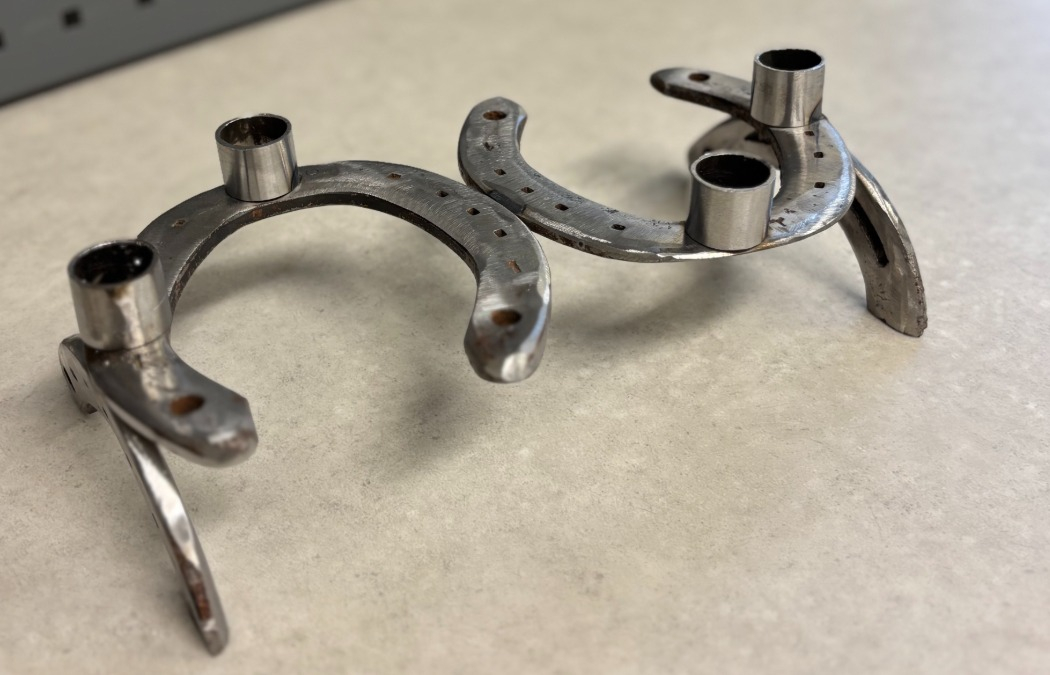 Adventsljusstake - hästskor är en unik och rustik dekoration som kombinerar tradition med hantverk. Ljusstaken består av tre hästskor, svetsade i en rad, med hållare för ljus på varje sko. Den metalliska ytan kan vara polerad för en elegant känsla eller färgad i svart. Hästskornas form symboliserar tur, och tillsammans med adventsljusen skapar de en varm och personlig julstämning