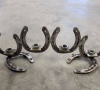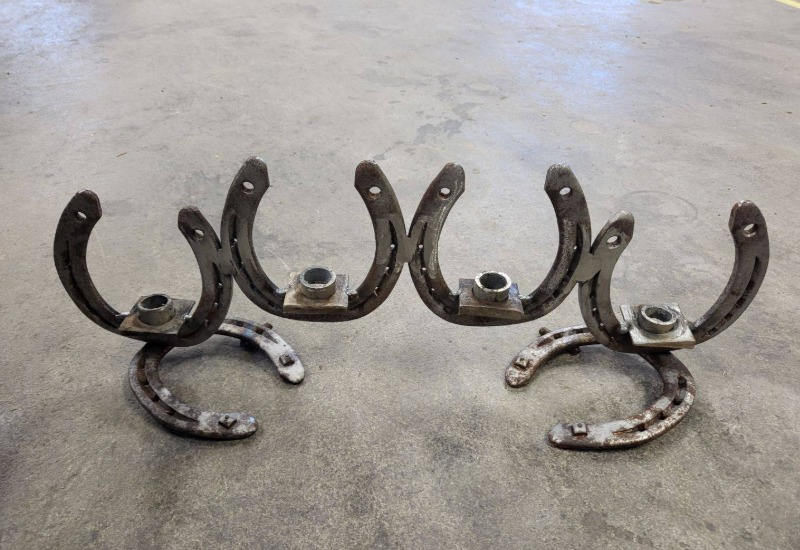 En fin ljusstake svetsad av använda hästskor och gamla muttrar som skulle bli skrotade. Går och få i färg.