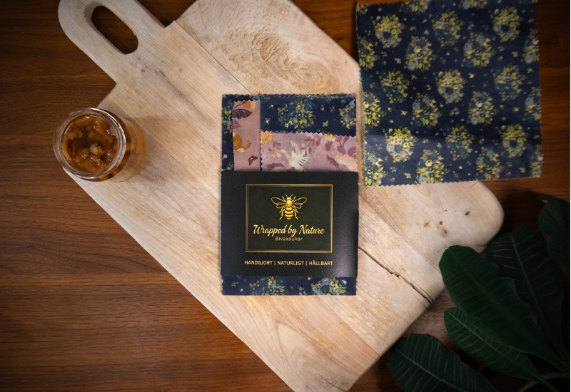 Ingredienser: svenskt bivax från Linköpings lokala biodlare, GOTS och/eller OEKO-TEX certifierat ekologiskt 100% bomullstyg, tallharts och ekologiskt certifierat jojobaolja.