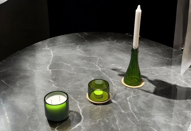 Vanilla bourbon är ett ljus som väcker varma dofter med toner av vanilj. Man får med ett helt set av 3 delar. Alltså får man hela flaskan i ett set där bara bottendelen har doft, mittendelen är till ett värmeljus och flaskhalsen är till ett högt stearin ljus.