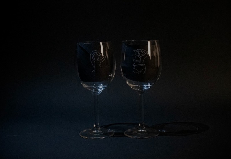 Elegant set med två unika vinglas, var och en prydd med ett vackert kvinnomotiv. Perfekt som present, för att förgylla middagsdukningen med en personlig touch eller som en stilren inredningsdetalj.