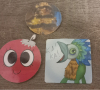 Handgjord pin som är gjord av laminerat papper och limmat fast med limpistol broschnål under papper. Kommer med olika former på mönstret av laminerat papper!