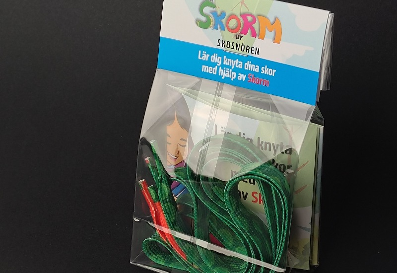 Innehåller ett par skormsnören och en illustrerrad broschyr som lär ut hur man knyter sina skor