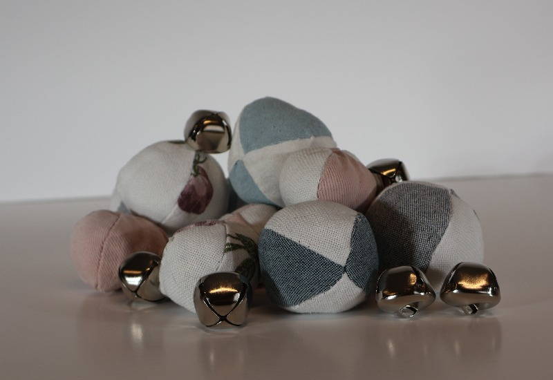 Våra kattbollar är handgjorda av återvunnet tyg eller kläder från FA-Fyndet. Dessa bollar innehåller även en bjällra samt kattmynta för att fånga katternas intresse.