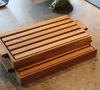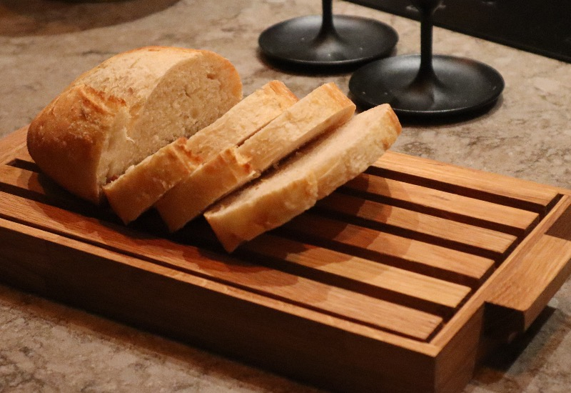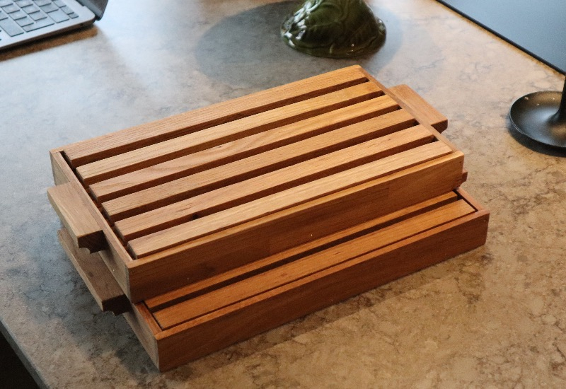 En brödskärbräda perfekt för att skära exempelvis en limpa på. Med det smarta gallret faller alla smulor ner i skärbrädan som sedan enkelt töms genom att ta bort gallret. En något mindre design än den stora.