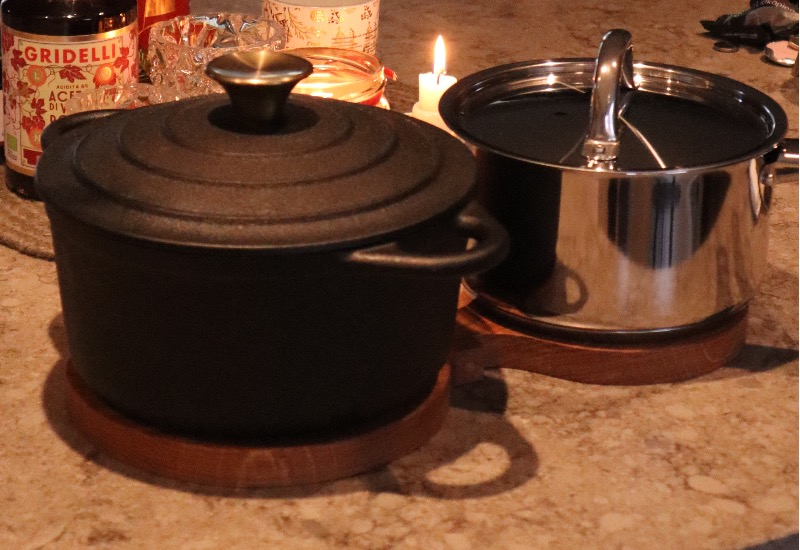 Ett grytunderlägg med funktionell design och plats för antingen en, två eller en stor gryta/panna.