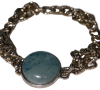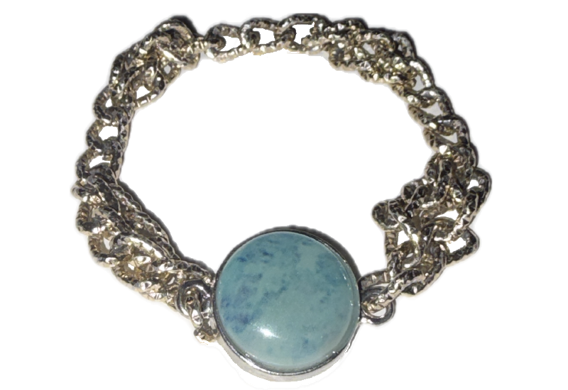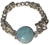 Armband i guldfärgad metall med en stor blå pärlliknande dekoration i mitten. En elegant och iögonfallande accessoar som passar både till vardag och fest.