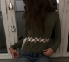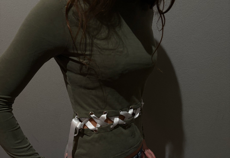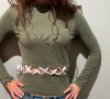 En grön stilren tröja med vita band som sluter öppningen runt om.