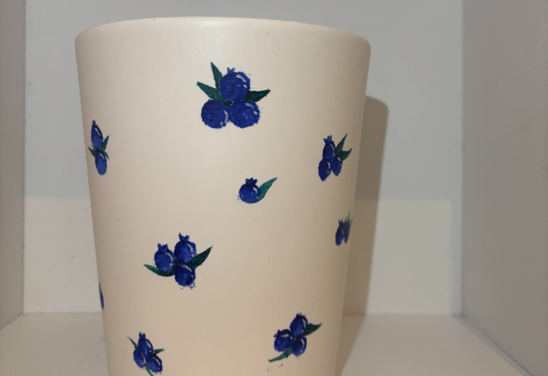 En otroligt fin kruka med handmålade blåbärs motiv som passar i allas hem. För att köpa våra krukor så skriver man till våra sociala medier Paintedpots.uf