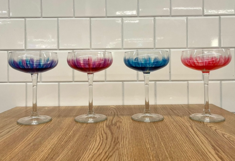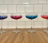 Det här stilrena och eleganta glaset förgyller varje hemma kväll, nyår samt en mysig egentid. De är ett lätt sätt för alla att kunna piffa upp köket i lägenheten och huset. De lila/blå och rosa/lila glasen är bland de mest populära i våra kollektioner och en favorit hos kunderna. Glasen finns i 4 olika färger: Rosa/lila, Blå/lila, Blå och Rosa.