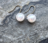 Dessa handgjorda örhängen är skapade av noggrant utvalda återbrukade pärlor som fått nytt liv i en elegant och minimalistisk design. Den mjuka glansen i pärlorna kombineras med enkla metallkrokar som skapar ett tidlöst uttryck. Perfekta för dig som vill bära något vackert, personligt och hållbart.