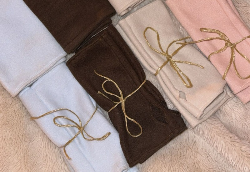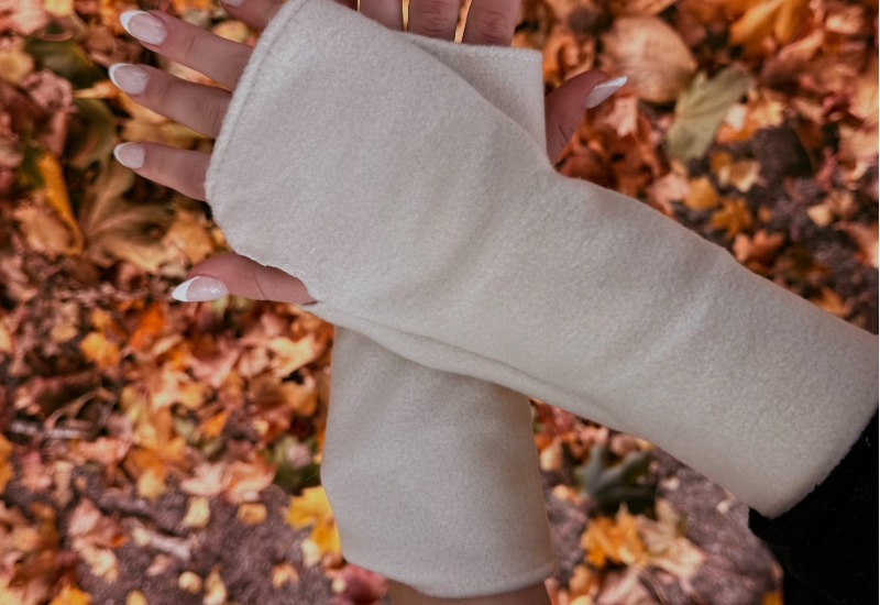 Handgjorda handledsvärmare i polarfleece. Finns i färgerna: svart, kamel, vinröd, grön, brun och creme.